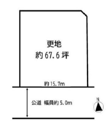 | 接道状況 | 西側:幅員5m 公道に15.7m接面 | ||