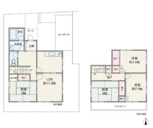 | 土地面積 | 238.32m²(72.09坪) | 建物面積 | 115.98m²(35.08坪) |